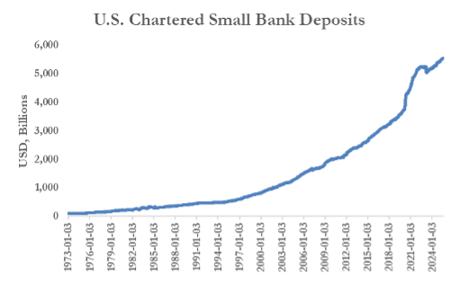 U.S. small banks hold nearly $6 trillion in deposits. Within that pool, corporate treasury and FX accounts, VersaBank’s initial RBTD target market, represent an estimated 5-10% of deposits, or $275-$550 billion. Capturing just 1–2% of that market would translate to $50-$100 billion.
