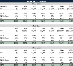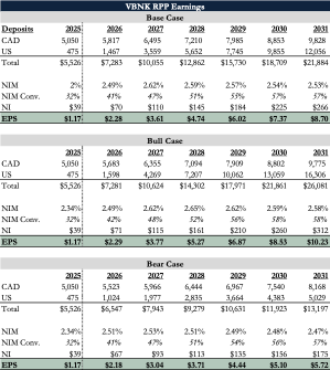 VersaBank has spent the last two years laying the groundwork for its U.S. expansion, and that heavy lifting is finally behind it. The upfront costs associated with the acquisition of a U.S. bank charter, and the one-time costs tied to regulatory approvals and operational systems are near completion. The sale of DRT Cyber should free up capital to fund new RPP assets. Against this backdrop, the business is poised to begin scaling RPP in the U.S. at structurally higher margins. And as we hope we’ve made clear, the Real Bank Tokenized Deposits (RBTD) business is primed for a zero-to-one inflection in the next 6-12 months, an option completely free to investors today.